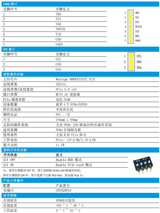 CNT52PE16 是 CEACENT 自主研发的一款双口 MCIO X 8 NVMe 硬盘转接卡,内嵌澜起 Re-Timer信号增强放大芯片,总线可以达到真正的 PCIe 5.0*16 总线程,仅需 PCIe 金手指供电,无需额外供电,支持市场符合标准协议的 NVMe 硬盘,需要主板支持拆分功能。