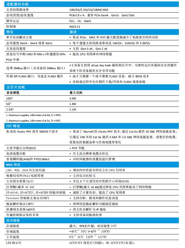 CC8115-T1是深圳嘉华众力科技有限公司在基于Marvell AQC主方案上开发出的一款电竞万兆网卡,具备PCIe 3.0x4线程,支持10G/2.5G/1G网络速率;主控采用Marvell先进的14nm制程工艺,拥有着低功耗,高性能,兼容性强,稳定性绝佳的特点,适用于电竞,NAS,文件系统等高速率传输应用 ;