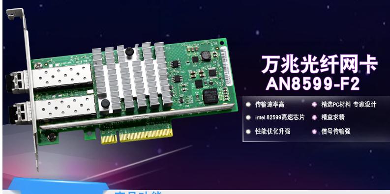 嘉华众力科技有限公司在基于Intel82599芯片 英特尔X520网卡方案的基础上退出了 CEACENT AN8599-F1(万兆单口光纤网卡)、CEACENT AN8599-F2(万兆双口光纤网卡)、CEACENT AN8599-SR2(含模块)等产品,想了解更多存储产品需要合作与咨询搭建方案请联系官网上的在线客服,嘉华众力自2000年成立以来一直在网络存储、传输这方面积累、沉淀;经过多年发展与全新的品牌定位,( CEACENT )嘉华众力品牌已成为国内外极具实力的数据通讯产品及方案提供商,请关注嘉华众力官网:www.unicaca.com