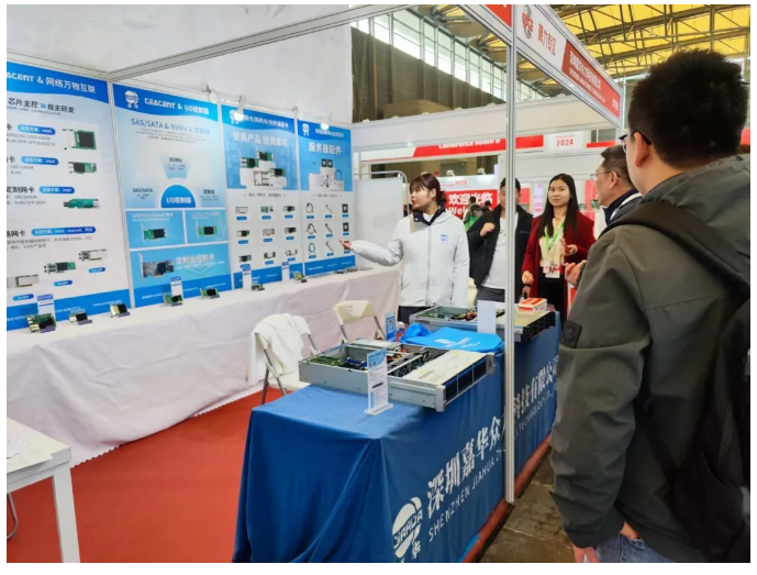 此次展会嘉华众力展出的展品有:4盘直通背板(SAS/SATA)、8盘全闪混合背板(NVME/SAS/SATA)、网卡、转接卡、HBA卡、2U-12盘服务器、2U-24盘服务器等,可满足互联网、金融、算力等行业客户的不同应用场景需求。