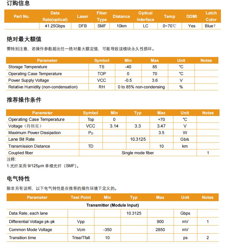 CEACENT CF40GSLQF1 收发器专为 10km 光通信应用而设计。该模块由四通道光接收机和包含双线串行接口的模块管理单元组成组成。光信号通过行业标准 LC 连接器复用到单模光纤。
